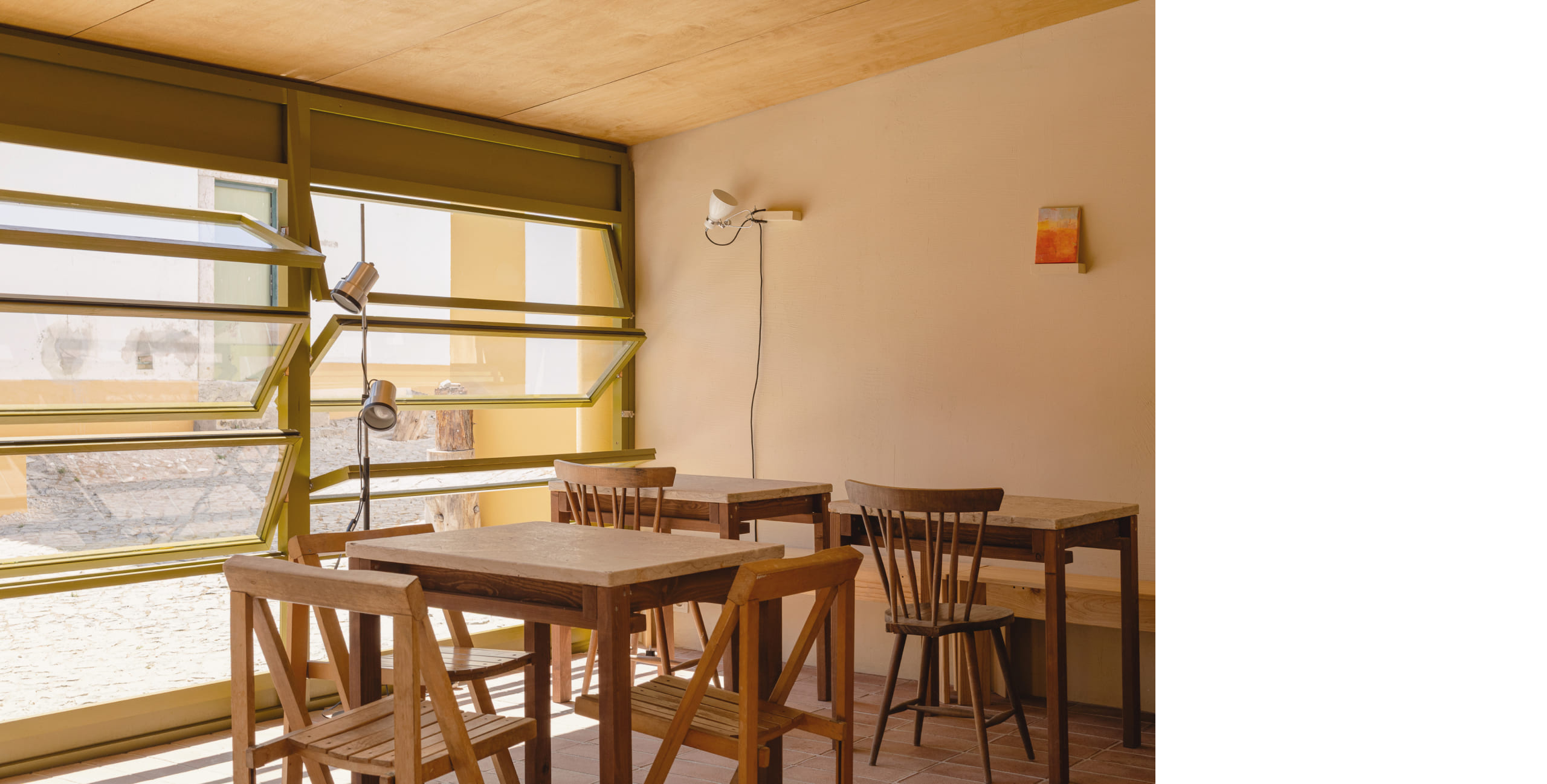 The methodology, while rooted in our Nordic background, is equally shaped by the ethos of the bakery itself: the chefs translate the language of new Nordic cuisine into a Portuguese register, working with local farm produce and wild herbs while integrating them into the rituals of fika. In the same way, our architectural assemblage translates Nordic logics of composition into Portuguese equivalents – Windsor-type chairs become Rabo de Bacalhau, iconic Scandinavian modernism finds its counterpart in Olaio’s rediscovered designs. Both in food and in space, the project affirms the autonomy and richness of Portuguese culture while situating it within a broader, global dialogue.